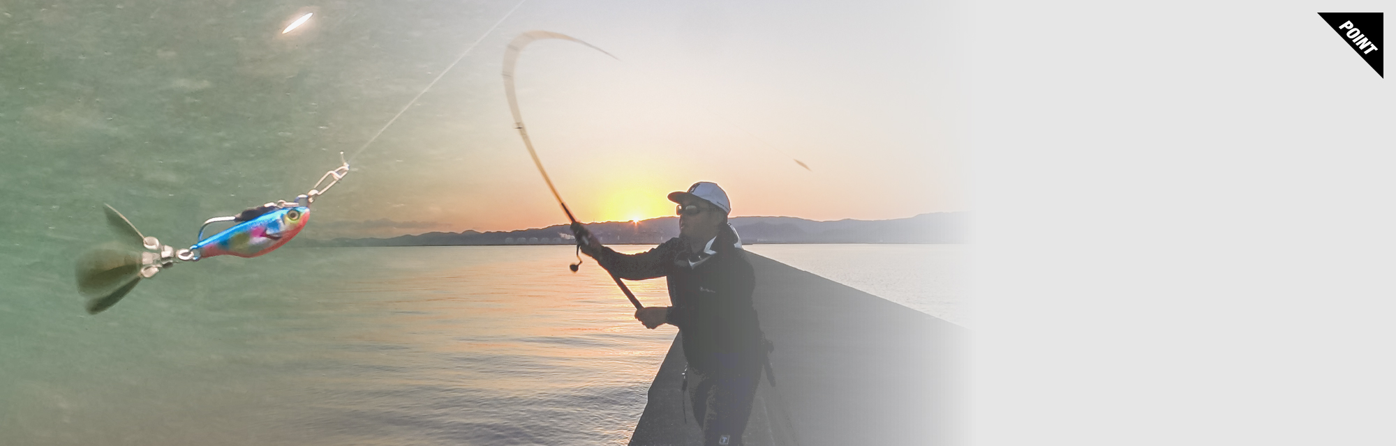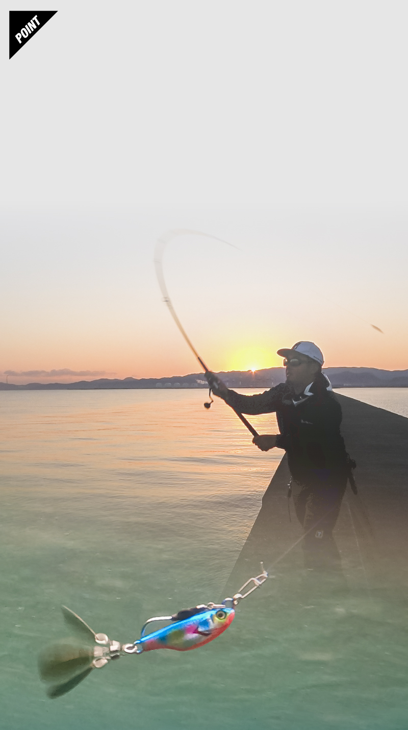 サワラなどの歯が鋭い魚が相手でもアシストラインを切られることが無いよう、スイベルアシストを採用。他の青物や根魚でも問題なくフックアップします