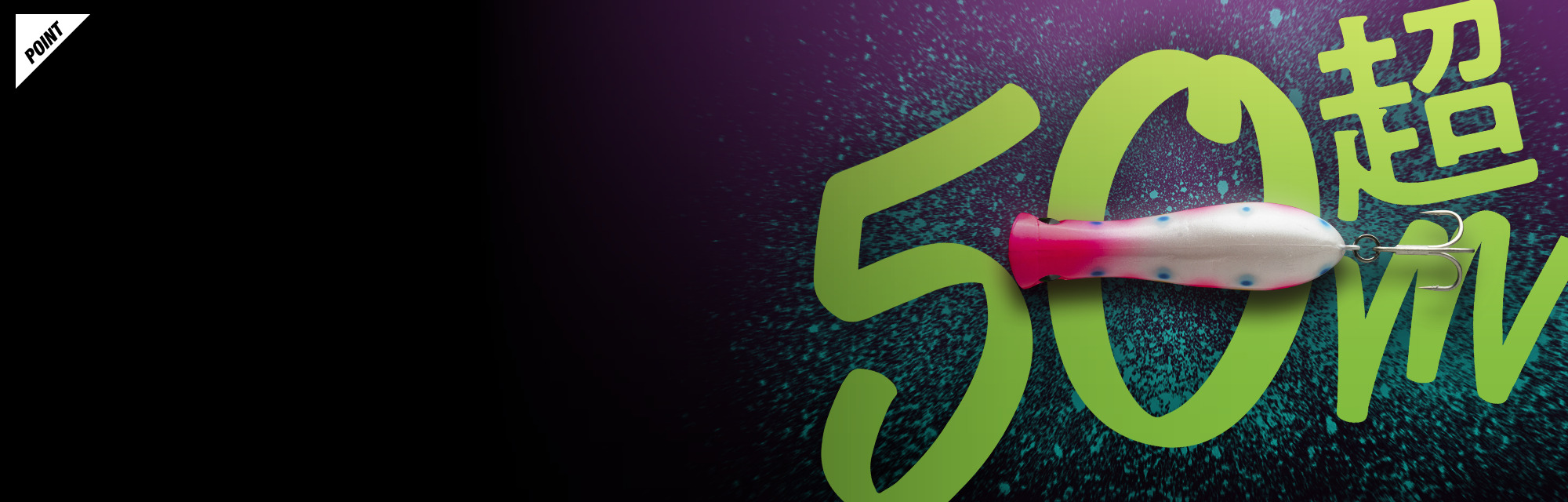 テール側に体積と重心を集めた設計により、安定した飛行姿勢での遠投が可能。平均52.2m※と抜群の飛距離を実現し、未開のスポットを射程に収め、ショア・オフショア問わず活躍します。※PE0.6号、リーダー10lb、7ft7inchのロッドを使用した場合の5回のキャストの平均飛距離。当社計測。