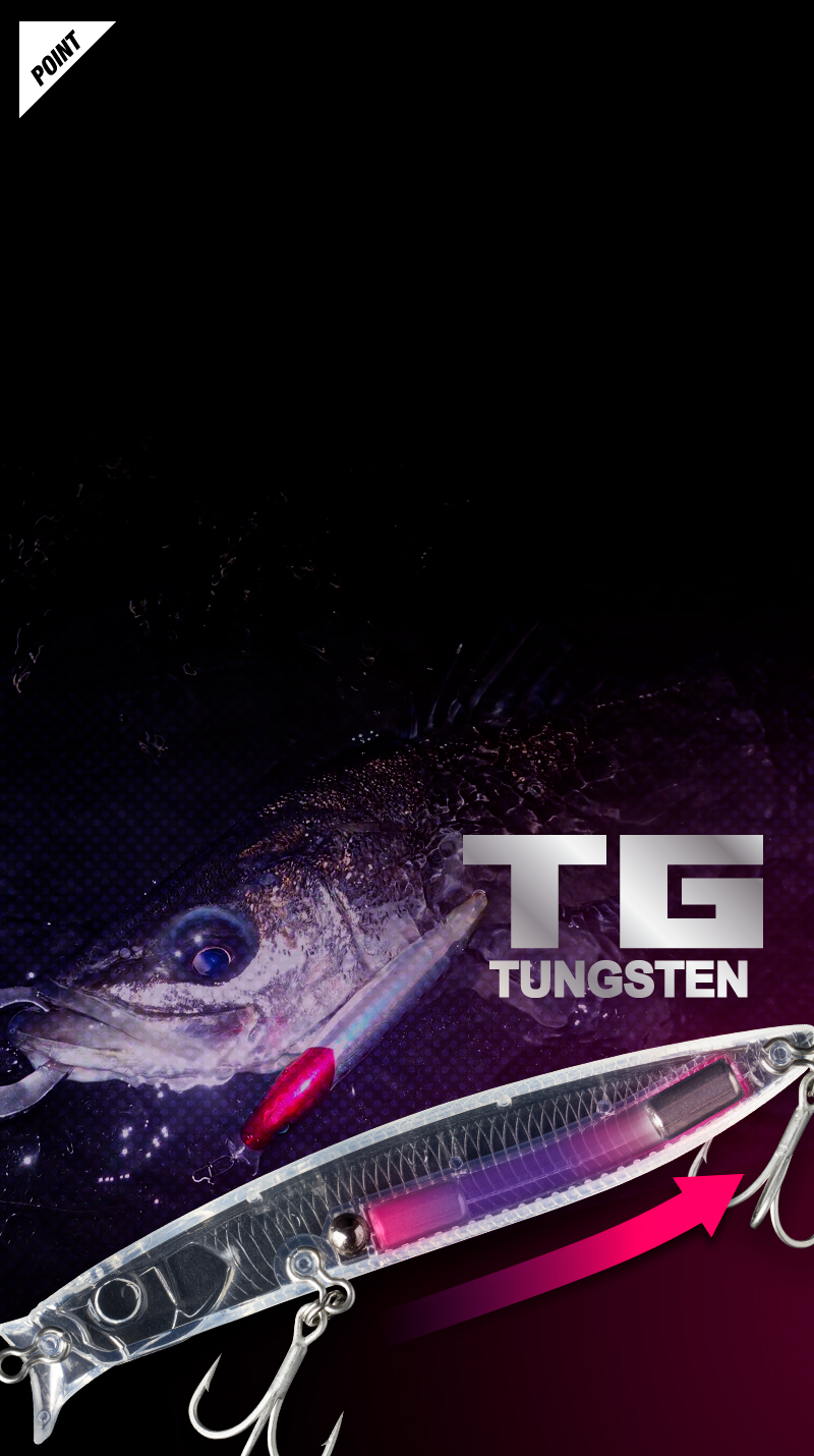 ゼロフリクション重心移動システムと、ややテールファットなボディ形状により、抜群の飛距離を安定して再現可能。フッ素樹脂をまとったウェイトは着水後の戻りが早く、ハイレスポンスな泳ぎ出しでムダなく誘います。さらに、トゥイッチによる平打ちや、竿先や流れに応じた角度調整で細かなレンジコントロールも自在。エキスパートも納得の操作性を備えています。