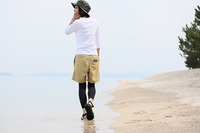 ショーツはコンパクトに収納できるパッカブルタイプ。バッグや車の中でも場所を取らずに持ち運びすることができます。ワイドすぎないすっきりとしたシルエットとなっており、スニーカーやサンダルなど合わせる靴を選びません。