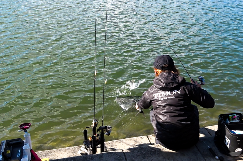 フル遠投し、そこから巻き始めて3回転以内に良い当たりがあり、立て続けに2匹キャッチすることができました。