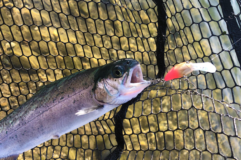 まずは、プリッキー。このルアーは瀧澤さんとの取材で3号池で良い思いをした経験