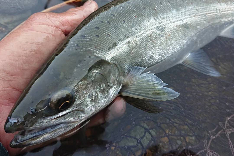 サツキマスというと遡上途中でその食性をなくし、ある程度の時期になるとリアクションでの釣りになるのですがシーズン初期などは 、あえてキラキラしたタイプのカラーではなく淡いカラーのほうが弱ったベイトとして認識され反応を得られたりします。