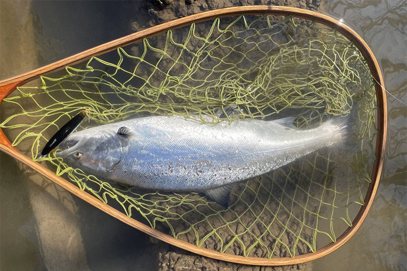 とにかく魚が暴れないのです。魚の首振りにブランクが追従し、魚の動きに粘るように纏わりつく様に曲がり、魚のパワーを吸収します。結果、ほとんどドラグを出すことなく、かといって身切れをすることもなく61cmのサクラマスを手にすることができました。