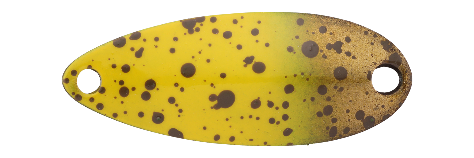表面にイエローを施し、テール部分はあえて素地を出しアピール。金メッキは嫌うけど鈍い光には口を使ってくれる魚がターゲット。
