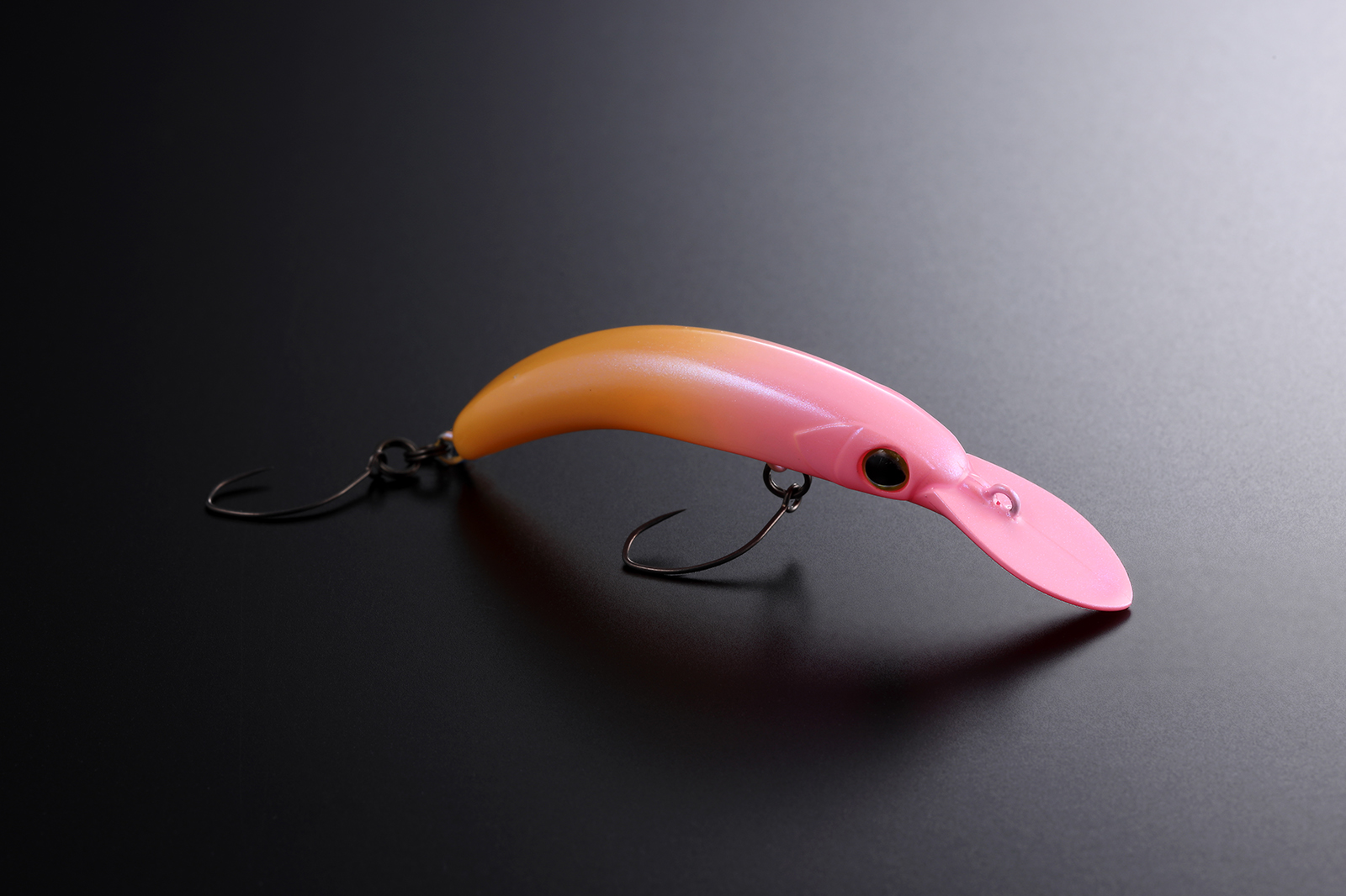 あえてコントラストの強いツートンカラーは避け、境界をぼかした淡いツートンに仕上げています。主張しすぎない配色でありながら、蛍光発色によって水中では十分な存在感を確保。