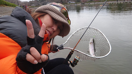 | その後、みぞれ混じりの雪が降り始め、段々とアタリもなくなったので棚を変えるとf着底後のワンアクション目にヒット。