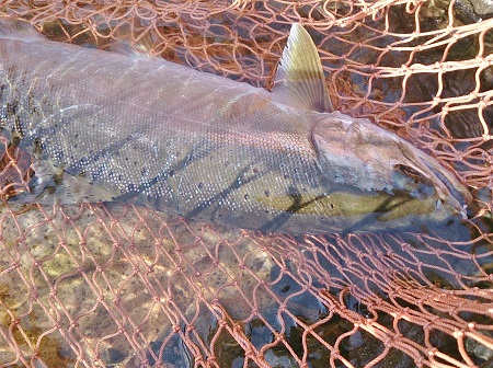 ランディングネットには若干色の出た精悍な顔つきの雄サツキが収まった。