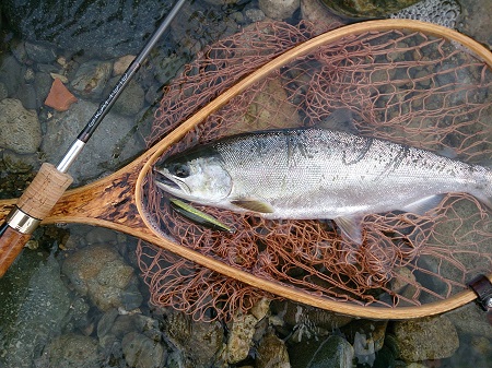 自分で探したポイントと、自分のスタイルで掛けたサツキマス。