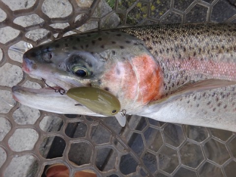 水温も13度~14度とトラウトも活発に動きまわり、表層付近を意識して中層から上の泳層なのでクランクで爆釣が続きました