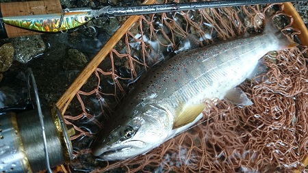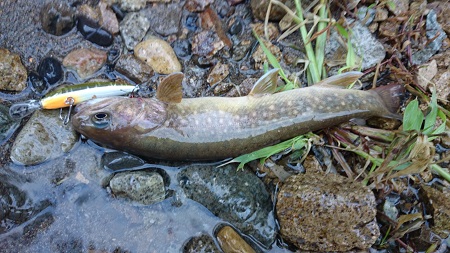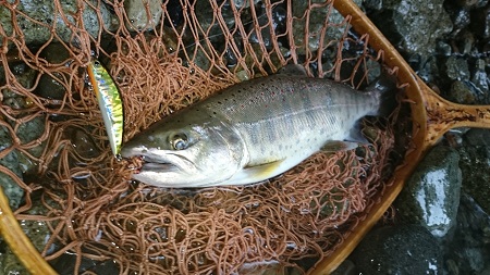 が雨と気温低下の為かトラウトのチェイスはあるもののバイトには持ち込めませんでした。