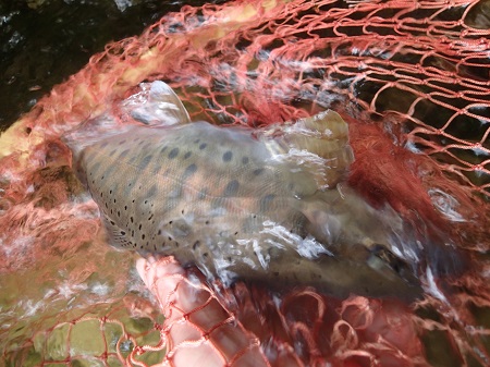 足元まで巻き取りネットでランディングしようと思いましたが足場が高くすくうことが出来ず、