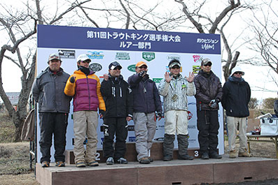 決勝進出者は19名との事・・・うち上位3名にエキスパート進出の権利が与えられます。 使用エリアは準決勝で使用した事務所前のエリアを30区画に分け、抽選番号順に好きなところに入ります。 そして運命の抽選は・・・・・15番 相変わらずのくじ運のなさ炸裂デス・・・ でもこのエリアは普段あまり釣りする事もなく、特に入りたい~~!って場所も無かったので、水車の水流の影響をあまり受けなさそうな場所に入りました。 場所はともかくあと30分、自分の今出来る釣りをやりきる事だけを考えて挑みます。 準決勝の終わりに入れ食いになった『ピーチフィズ』を最初から投入するか悩みましたが、万が一釣れなかった時、気持ちが切れそうだったのでティアロ1.6gグリーンヤマメからスタートです。 ボトムから少し上を出来るだけ丁寧に、時折フリップやフォールさせると駆け上がり付近でヒットします。 準決勝とあまり変ってないイメージでしたが、若干活性は落ちてる模様・・・ カラーローテでしのごうと2色目にピーチフィズを投入!!! しかし反応は今一です。 あまり粘らず3色目はホワイトグロー。これに変えると反応が良くなり数本追加。 釣り上げる度に後ろから『ヨーーシ!!』との黒ちゃんのかけ声! 元気付けられますね~~黒ちゃんありがとう!!! 後半も今日反応の良かったルアーをローテし残り数分、再びピーチフィズを投入。 後半、後ろからしきりに『あと2本!!』とのかけ声。多分隊長だったのかな~~??? なぜ2本やね~~~ん!! でもあと2本釣らないとボーダーに引っかからないって事???などと思いながら、最後まで1本を取りに行き、終了間際に1本追加しタイムアップ!!!!! |