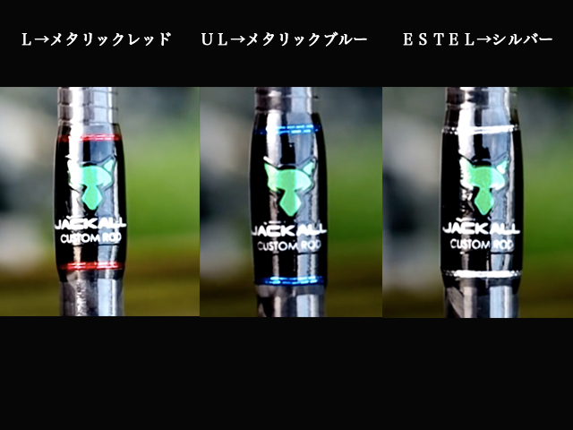 L→メタリックレッド、UL→メタリックブルー、 ESTEL→シルバーで種類がわかるようにしています。