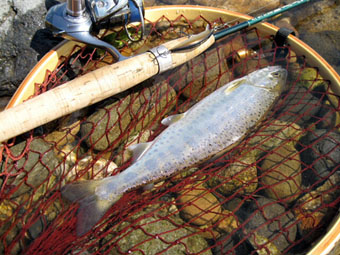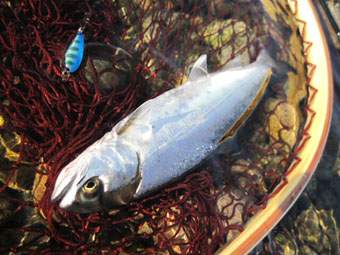 場所を変えた。 さらに車で下って10分。 またまた、盛期には絶対やらないと言えるほど、ひざほどの深さしかない長い長い瀬。 随分時間がかかるぞと思ったが、ここでやめるつもりだったから入った。 ながいな~~と思いながら、さっきもひとつしか入ってはかったからな、やっぱまだ早いんだよな・・・ ルアーはウィル。 どんなに浅くても根掛りはしないので、気楽に川の端から端まで流す。 ほとんどウェットフライトのテクニックだ。 なんだかんだ終わりまであと少しのところまできた。 と、そこで「グーンッ」バシャバシャと可愛い水しぶきと共に寄ってきたのはヒカリはヒカリでも今度はヤマメの子。 もういいや。 来週から3週間連続で赤川だ。 早くおっきいの釣りたいな。 |