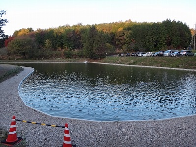私の釣り座は下の2号池・川側奥の水車横のブロック