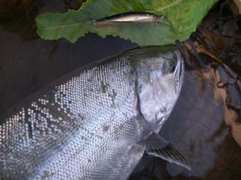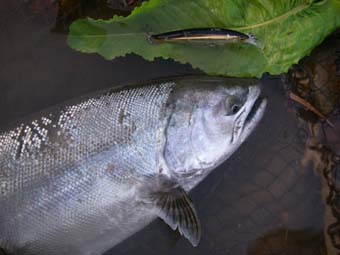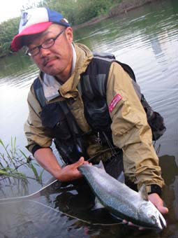 数分後、二日がかりで私達が手にしたのは60cmジャストのシーライス付きのサクラマスだった。