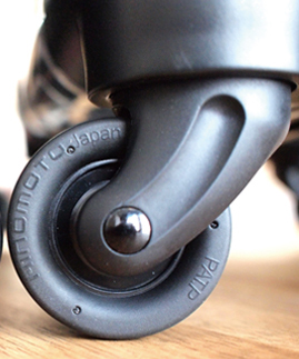 ホイールには丈夫で壊れにくいHINOMOTO 4輪キャスター (大型50mm) を装備。