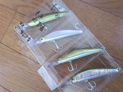 とある日、TIMON ルアーデザイナー藤松氏より、四つの『トリコロール88F MD』が届きました。