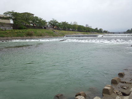 通常は水が溜まりプール状となっている場所が、機械式堰堤が解放されていたために、本来の川の流れとなっていた。