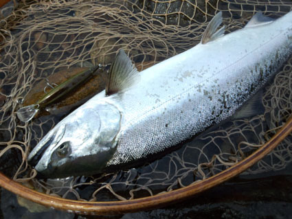 直後サクラマス特有の強烈なダッシュが『ジーーーーーーィ』と言うドラグ音と共に襲い掛かった!