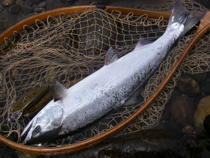 切れ間の無い、美しく怒り狂ったファイトをひたすら耐え、少しずつ引き寄せ、足元での最後の爆発も何とかいなし、その櫻の捕獲に成功した。