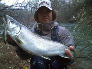 産卵で流れ込みに遡上してくる8cmくらいのワカサギがメインベイト。正にトリコロール83がマッチザベイトじゃないかと期待しながらポイントへ。釣り方は下流にキャストし流れのヨレを見越しキャストを繰り返し、岩の影にワカサギの遡上を待ち伏せしている岩魚にクチを使わせるといった感じです。