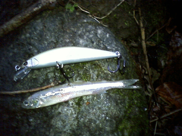 警戒心の強い岩魚はなかなかクチを使ってくれない中、おいしい所に入った瞬間、ひったくるようなアタリでした。トリコロールはヘビーウェイトで全層釣法ができ、バランスの取れた扁平ボディー。軽いロッドアクションで平打ちをする。いい仕上がりのミノーだと感じます。