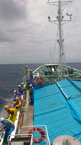 昼の12時に漁場に向けて出発しました。漁場までは約1日。次の朝には銀行に着くようです。
