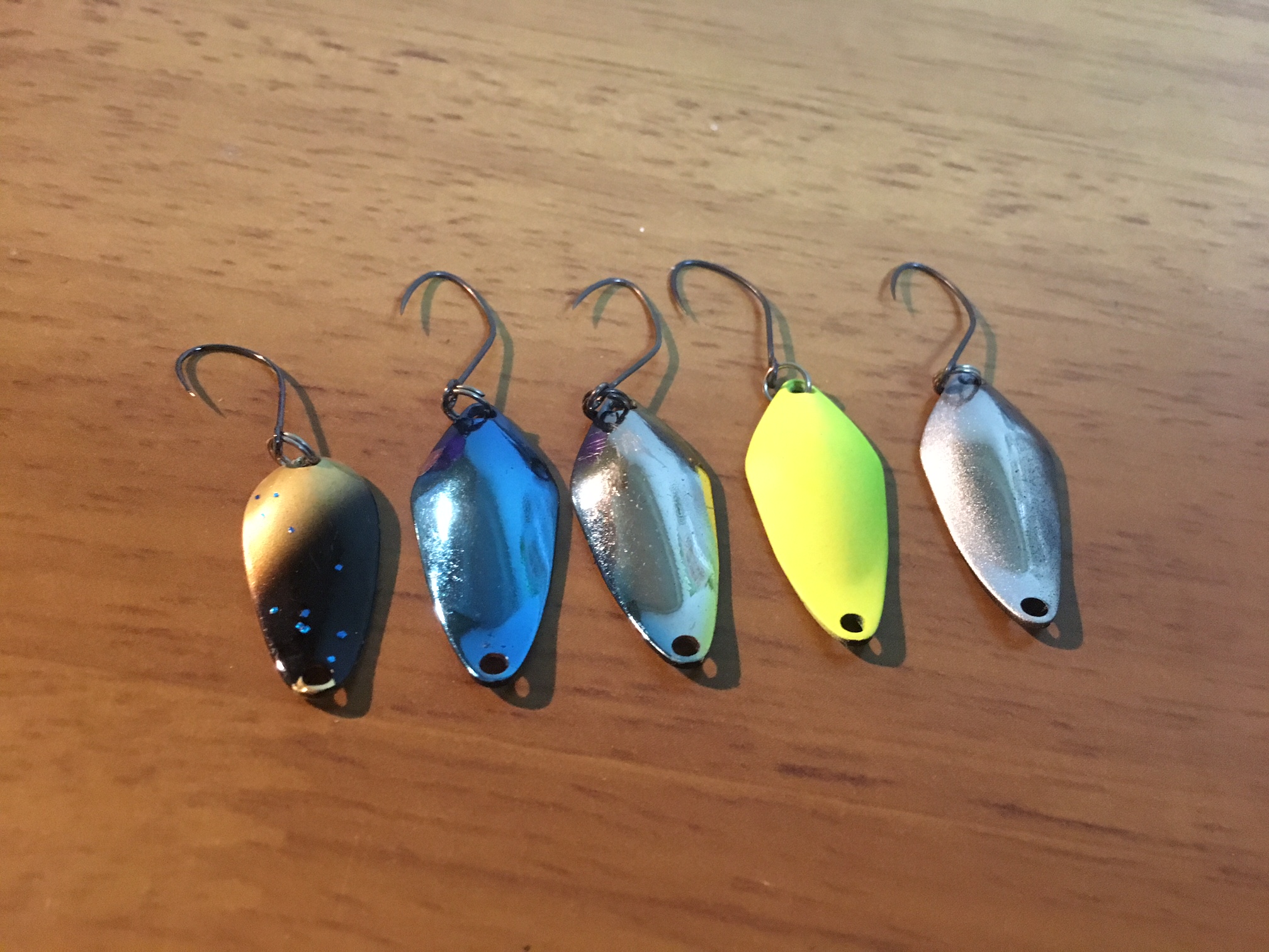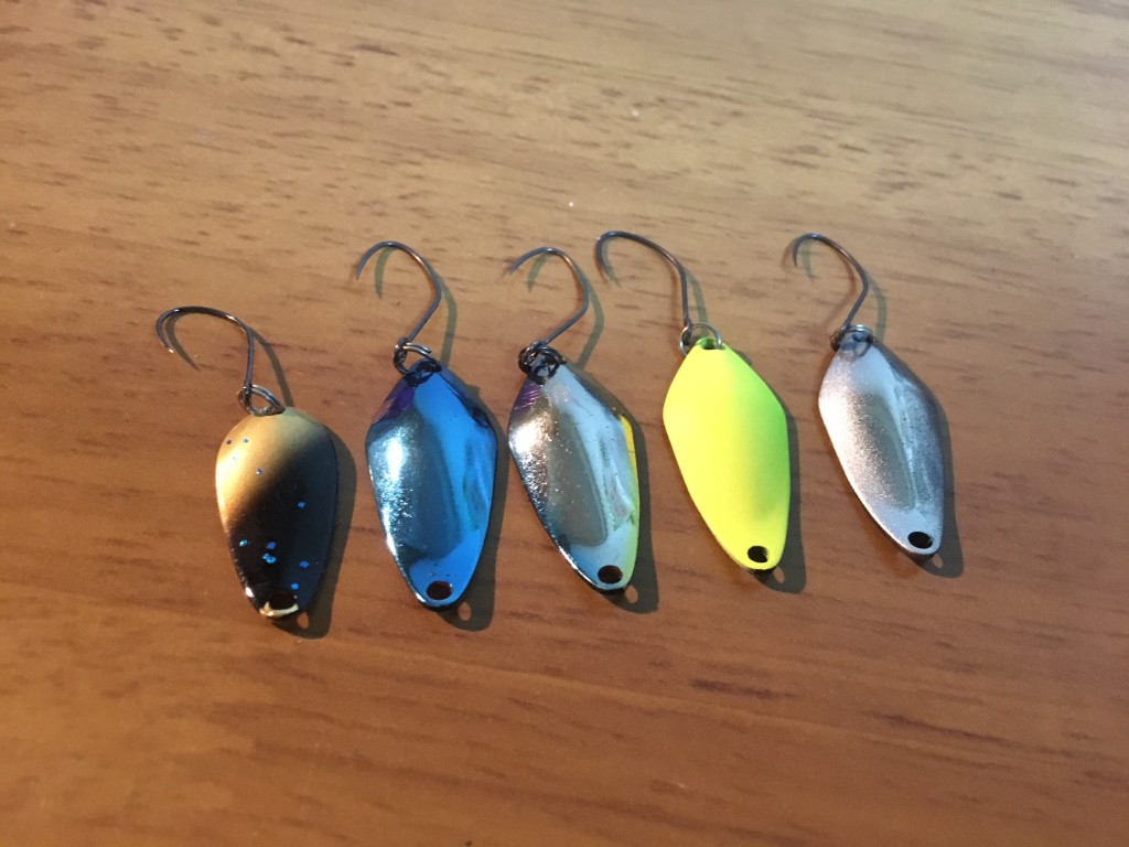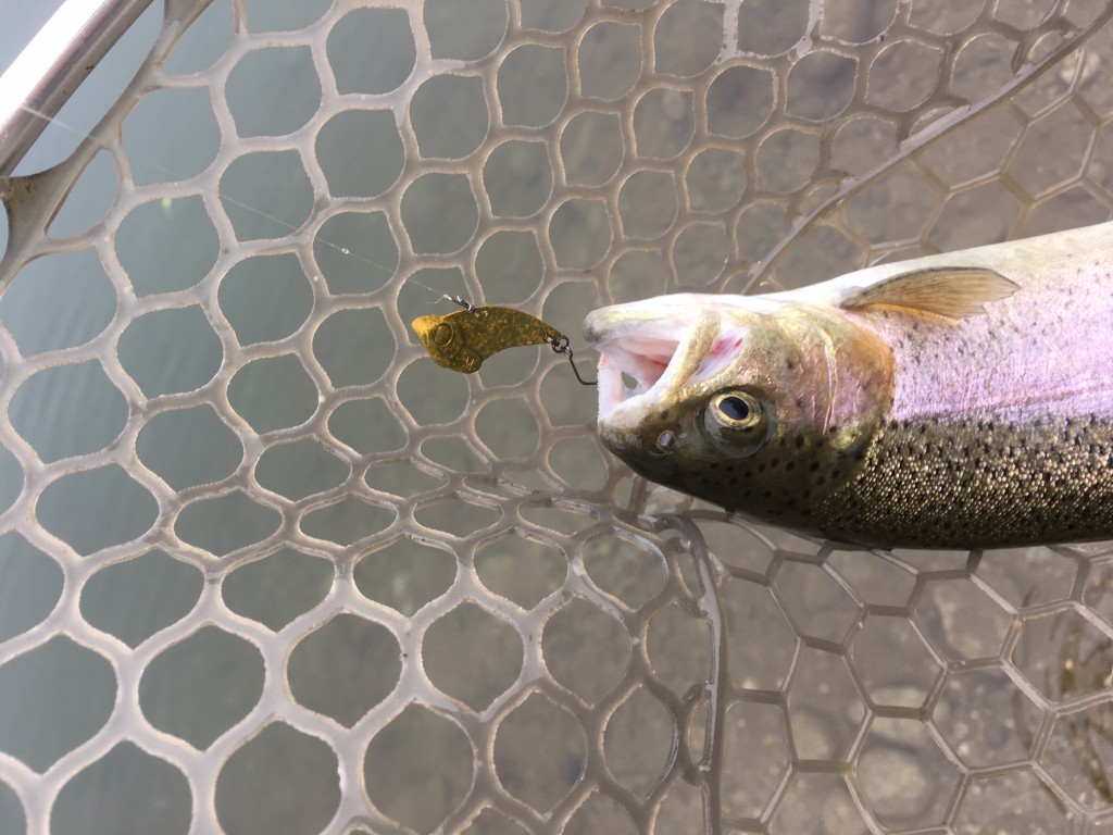 ボトム付近のトラウトに対して、巻きの横の動きだけではなく、フォールやフリップのリアクションや縦の動きが好反応だったようです。カラーはブルーシルバー、神シルバー、テスト中のシルバー系、そしてチャートクロなどの比較的派手目のカラーが良かったです。