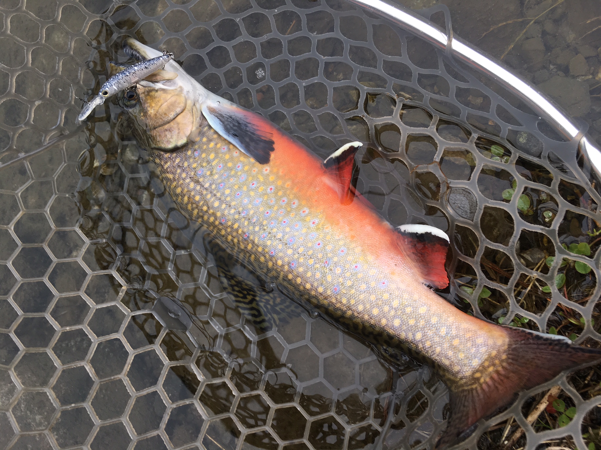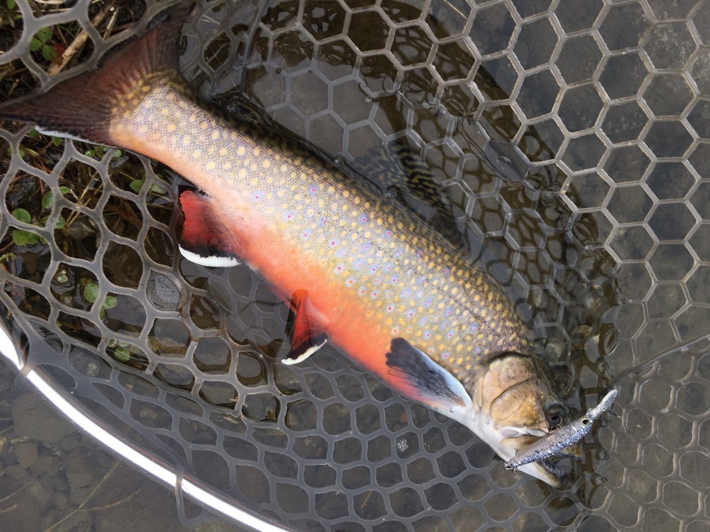リールを使ったストップ&ゴーで探っていると、すぐさま小ぶりながら美しいトラウトをキャッチ!