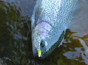 連休中と言う事もあって、プレッシャーで特に反応は良いという訳ではありませんでしたが、すそのFPは魚のサイズも良く、引きもあるので、1日40匹も釣れば満足する釣り場さんです。 今回同行した同モニターの針谷も私も、すそのFPでの釣行では表層の魚しかあえて狙わないと言ったちょっと偏った考え方がありますが、それでも釣行の時期や使うスプーン&使い方を間違えなければ1日を通してある程度の釣果は出ます。 今回は1日を通して明るめの色の方が反応は良く、特にニブル0.6gの強さを改めて感じた釣行でした。 |