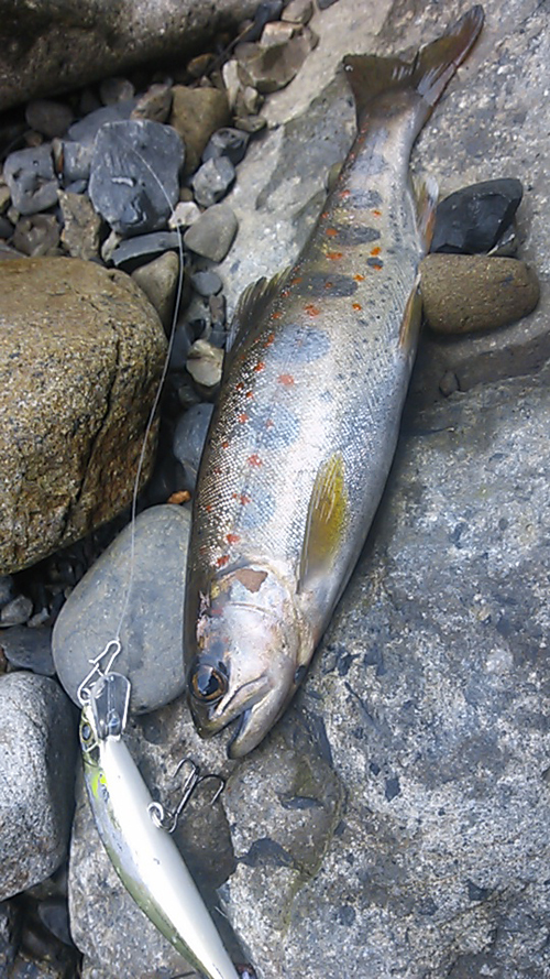 2013-04-17FIELD REPORTその他 WRITER:JACKALL 北村氏より根尾川の最上流部の渓流解禁レポート 先日、根尾川の最上流部の渓流解禁に行ってきました。 18~23センチの小型ですがアマゴが退屈しない程度に遊んでくれました。 日陰には雪が残り水温も低く春爛漫までもう一息といった感じがしました。 ゴールデンウィーク頃には本格的なシーズン突入するでしょう。 本流遡上魚釣りが多い私にとって渓流釣りはノンビリとでき癒しを与えてくれました。 PREV LIST NEXT