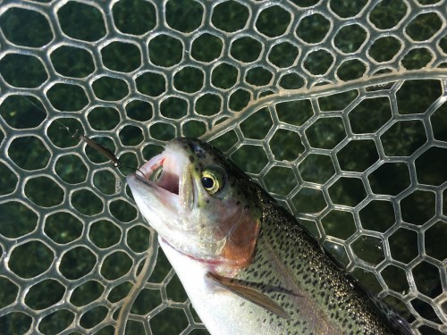 朝はティアロ1.6gでポツポツと釣り、太陽が昇った頃からは、ティーグラベル1.7gと2g 。目先を変えたい所では、タップダンサーや、現在テスト中のスモールサイズのタップダンサーとダートランを使い良いペースで釣ることができました。