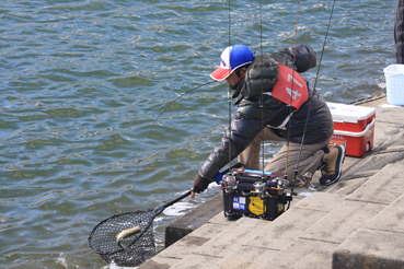 相変わらずの強風と、第1ローテの感触から、このラウンドもボトムの釣りで押し通し、7匹キャッチしたところで、次のラウンドで切れ目付近に入ってパニクラの中層引きをやりたかった為、少し早上がりをしました。