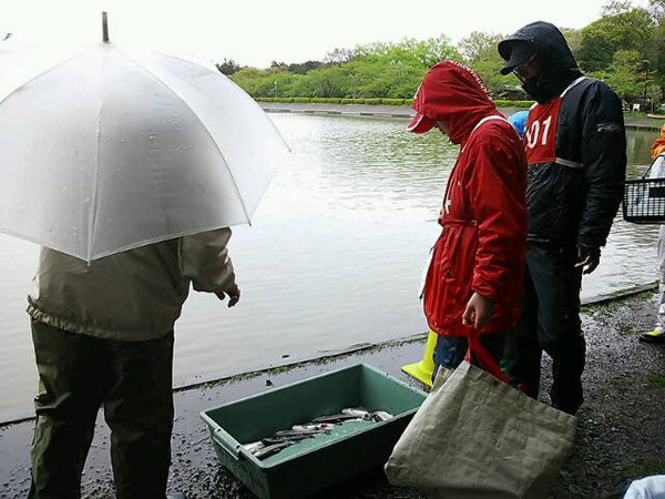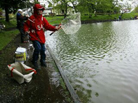 4等分されている(A・B・C・D)場所を選んで入り、魚をバケツに入れて