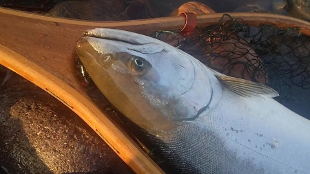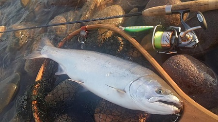 ベリーフックをガッツリくわえた凛々しいサクラマスのランディングになんとか成功。