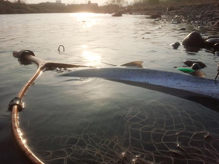ラインの巻き痕が無い綺麗なボディの櫻鱒のランディングに成功しました。