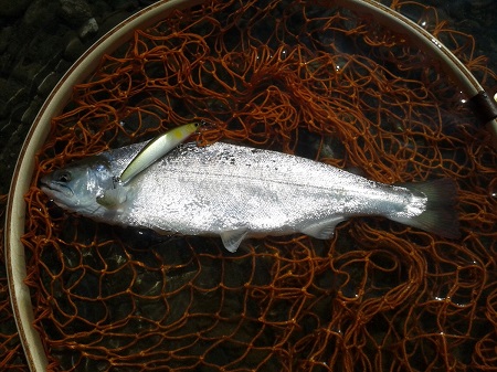 しっかりアワセを入れて、慎重にやり取りを楽しむ。(ホントは、ドキドキしてましたけど・・・。)
