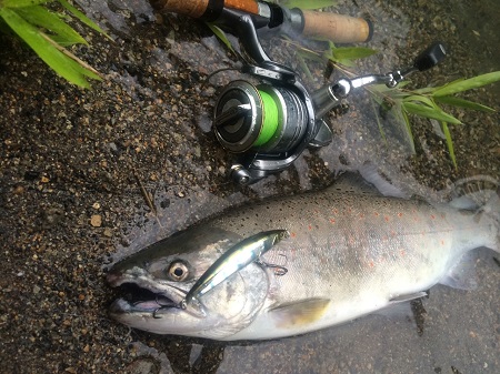 ルアーをトリコロールGT72-SR F ギンヤマメチェンジしてキャストを再開した数投目、