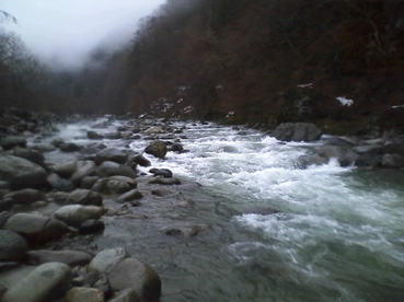 | C&R区間に入りましたが、そこにも無数の足跡、上にも何人かの釣り人が見えます。