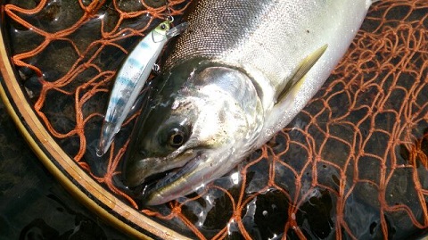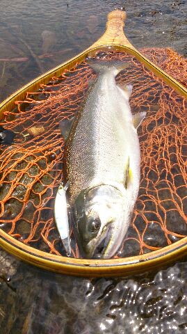 ルアーはトリコロールGT72SR-F、ギンヤマメ。