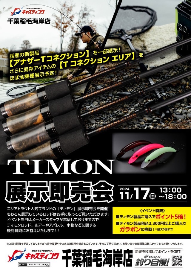 2024年11月17日(日)13:00~18:00キャスティング千葉稲毛海岸店にて「TIMON展示即売会」を開催いたします。