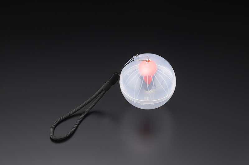バッカンなどにぶら下げる為のストラップには高強度の#4スナップを採用。使用後はアームにクセをつけないため、球体カプセルに戻し保管下さい。