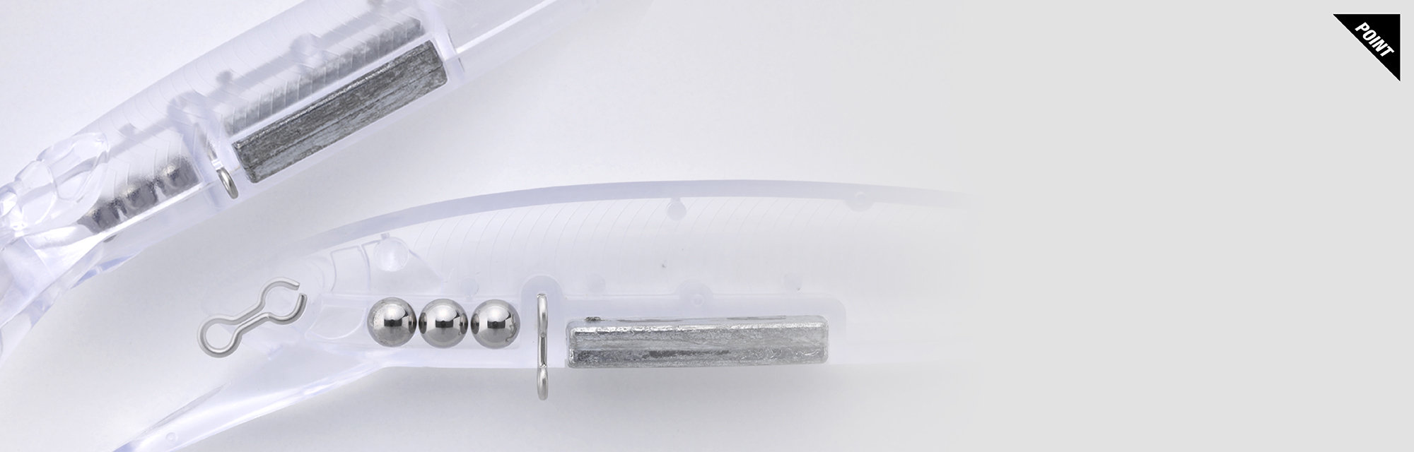 水深のある場所や流れの強い場所での使用も出来るよう別売のカスタムウエイトを取り付けられるアイを設けました。
