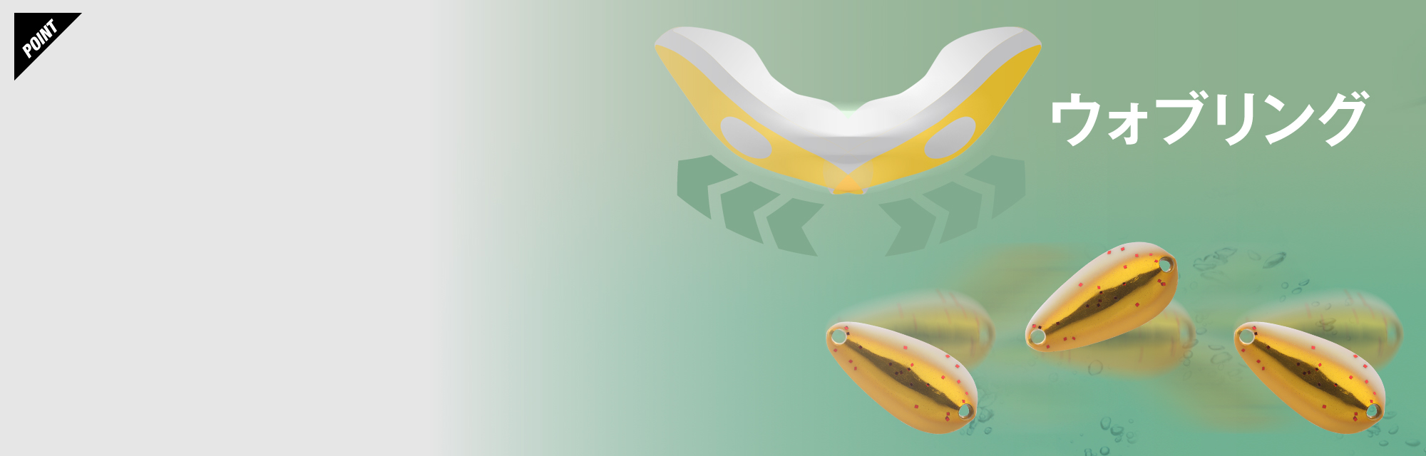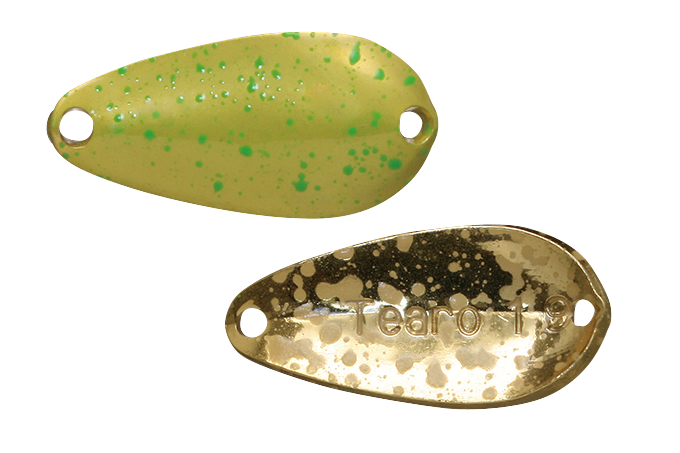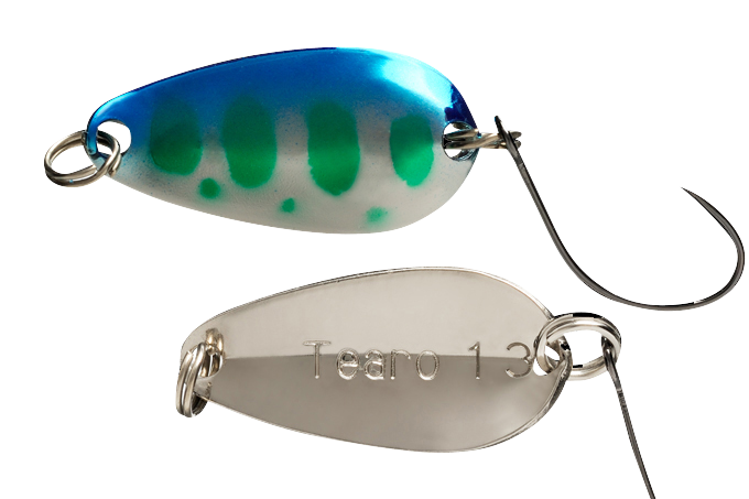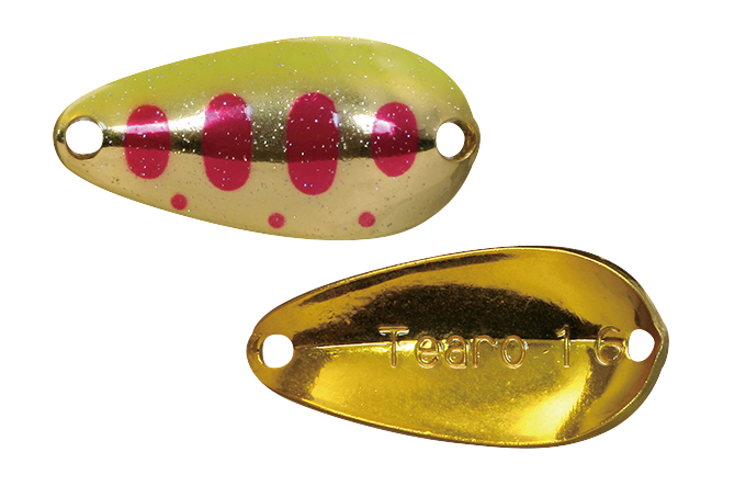 スローからファーストまで幅広いリトリーブキャパシティーを持ったベーシックスプーン”Tearo/ティアロ”。水掴みが良いティアドロップ型の形状と、微妙なノーズやカップのベンド角度により、大きなウォブリングでアピールします。