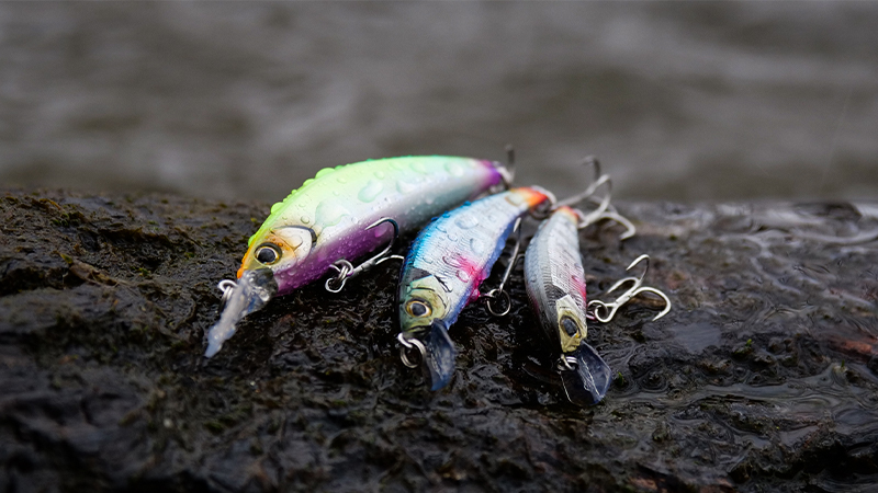 固定重心ヘビーウェイトにより抜群の飛距離を活かしたアプローチが可能に。さらにトゥイッチではフラット面のボディを翻しヒラを打つハイレスポンスなアクションで、低活性のトラウトにも瞬時にスイッチを入れることができます。