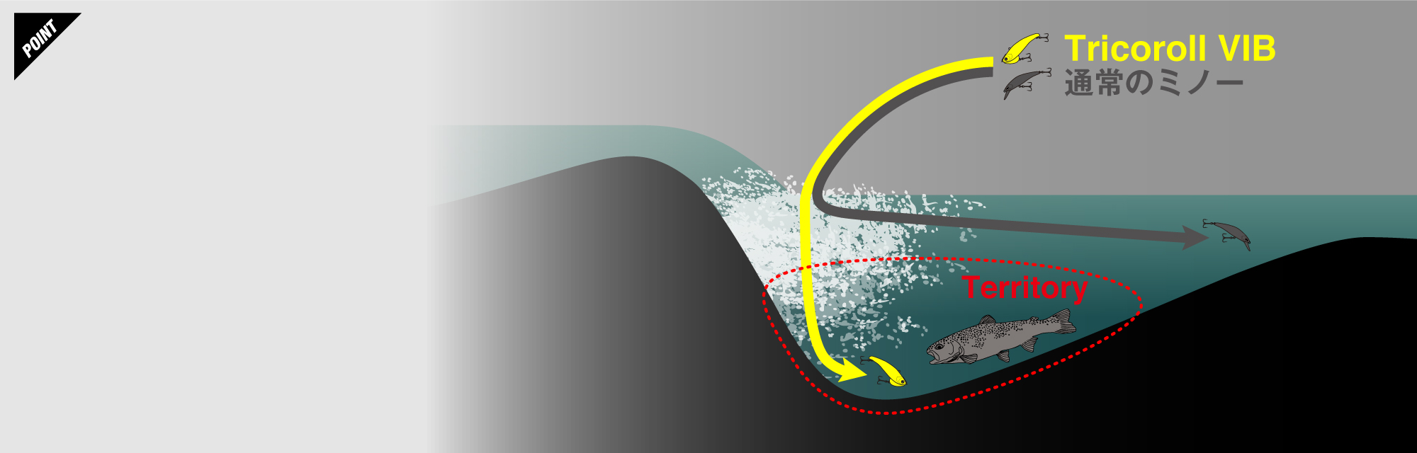 水深のある場所であっても、狙いたいレンジまで一気にルアーを届けることができ、今までルアーを見せられなかったトラウトに、より長く、より重点的にアピールすることが可能となります。