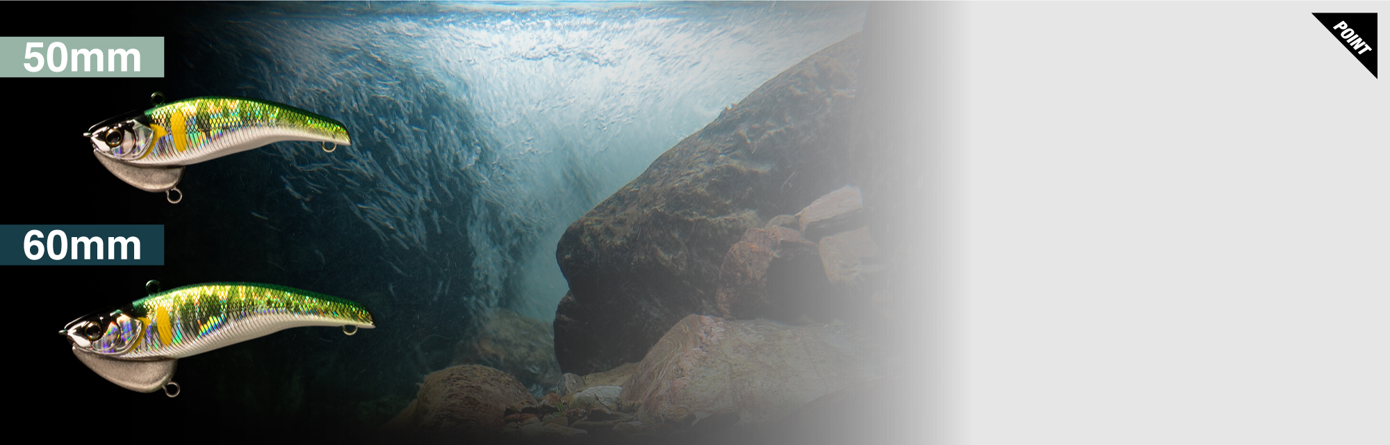 渓流域から中、本流域まで様々な川の状況に合わせて使用できるよう50㎜、60㎜の2サイズラインナップとなっています。
