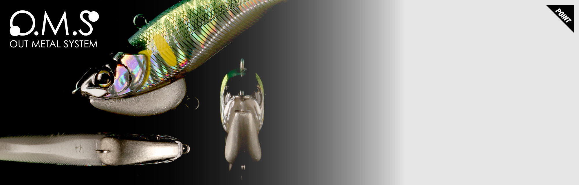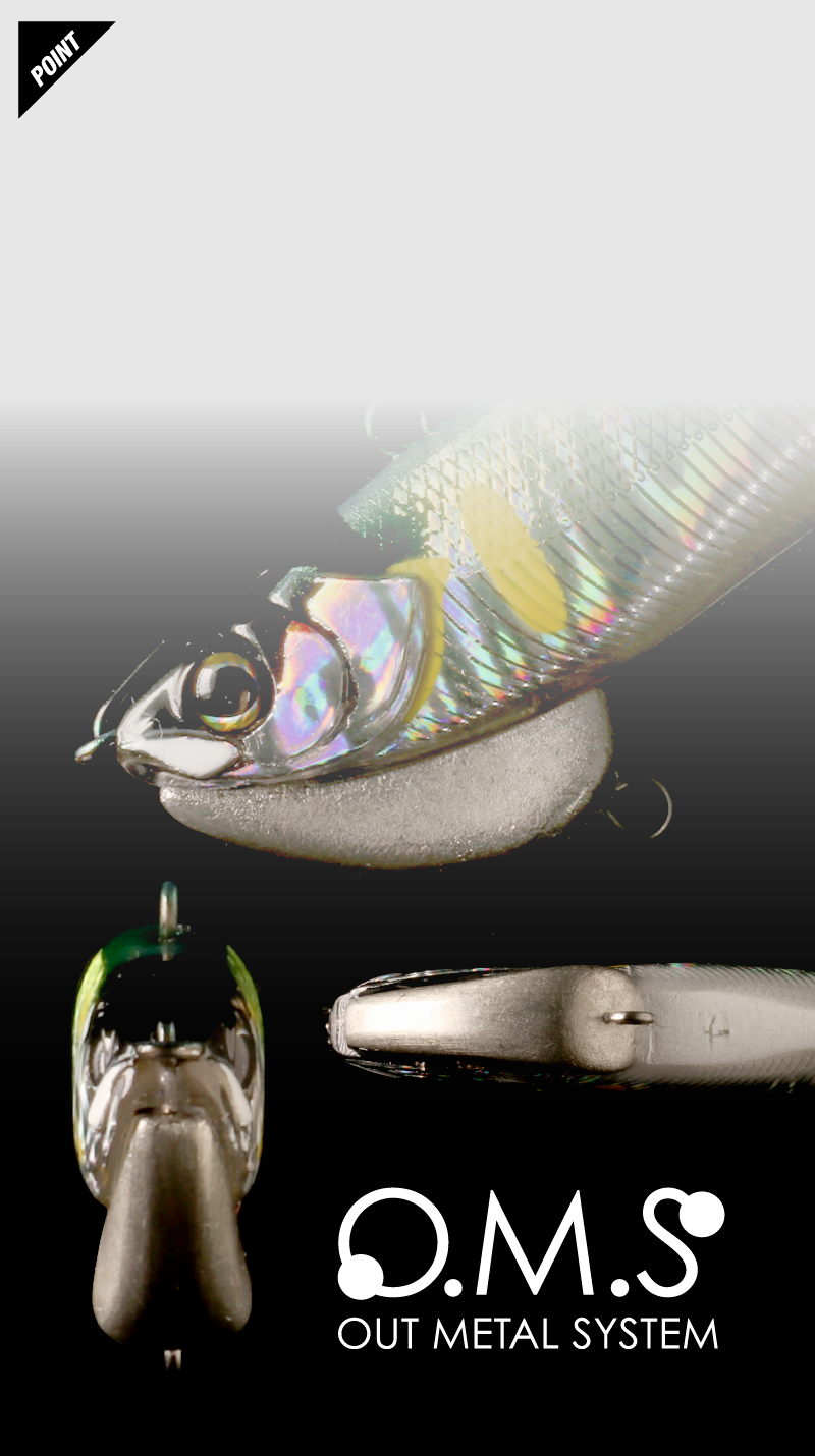 ウェイト部にはビスマス素材を採用。鉛よりも硬度が高い為、ボトムの使用での損傷が少なくなっています。また特徴的なボディーから突き出たウェイトシステム”O.M.S.(アウトメタルシステム)”を採用することで、ボトムの感知能力向上、根掛かり防止に貢献します。